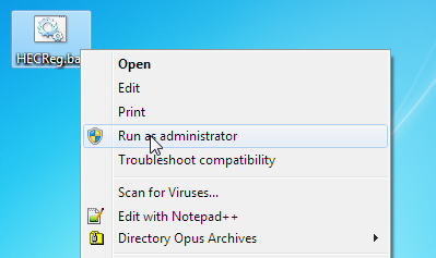 - Right click on the HECReg.bat file and select Run as administrator from the context menu options.